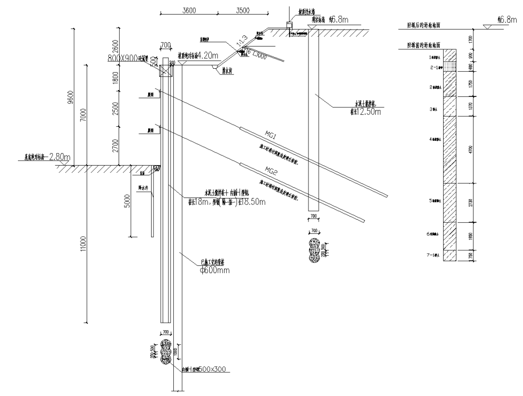 圖:根據(jù)現(xiàn)場(chǎng)實(shí)際條件圍護(hù)方案比選確定SMW工法樁+預(yù)應(yīng)力錨索方案