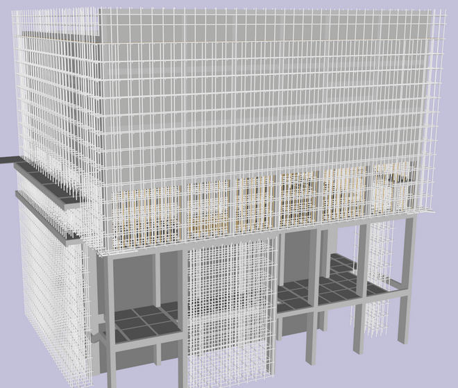 湖北廣水發(fā)電項(xiàng)目主廠房從25.8米至52米高度中間無(wú)樓板,周圈框架柱框架梁根據(jù)施工需要,框架結(jié)構(gòu)四口五臨邊圍護(hù)較多,結(jié)構(gòu)排架與圍護(hù)排架搭設(shè)成為施工中的難點(diǎn),通過集團(tuán)公司技術(shù)部門通過BIM建模輔助方案設(shè)計(jì)、計(jì)算,并配合現(xiàn)場(chǎng)放樣,完成施工難點(diǎn),推進(jìn)項(xiàng)目進(jìn)展。